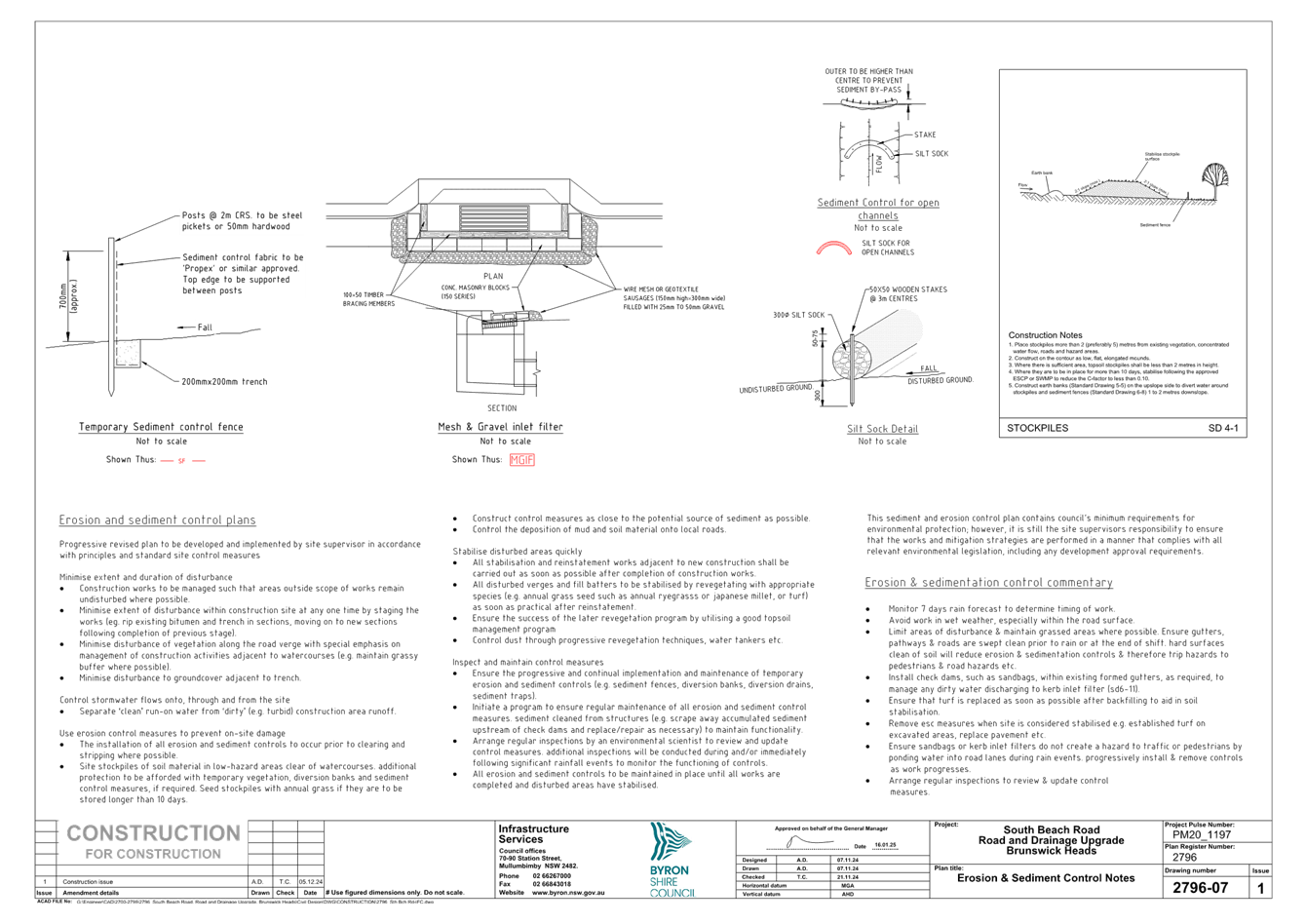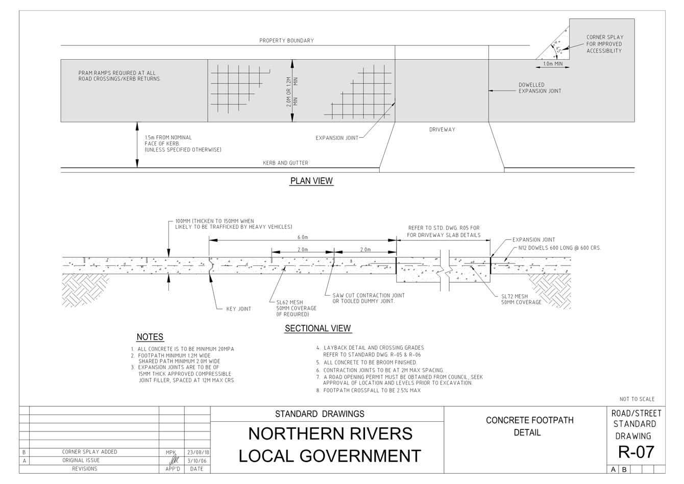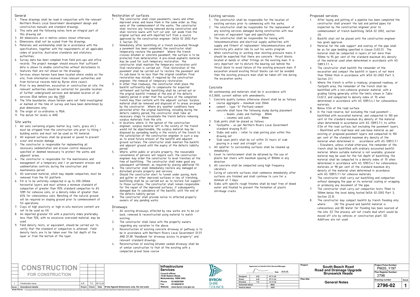 Roadworks in accordance with approved drawings, Council's current “Northern Rivers Local Government Development Design & Construction Manuals and Standard Drawings” and Austroads Guide to Road Design.