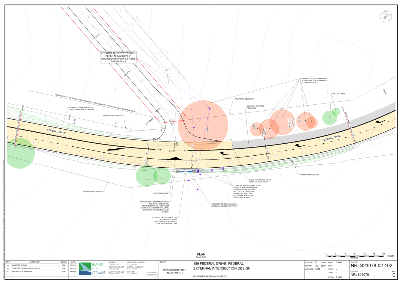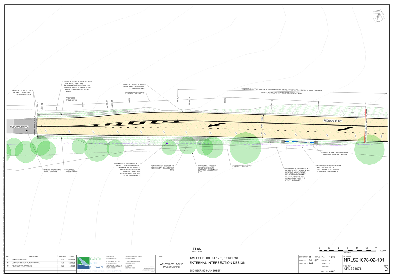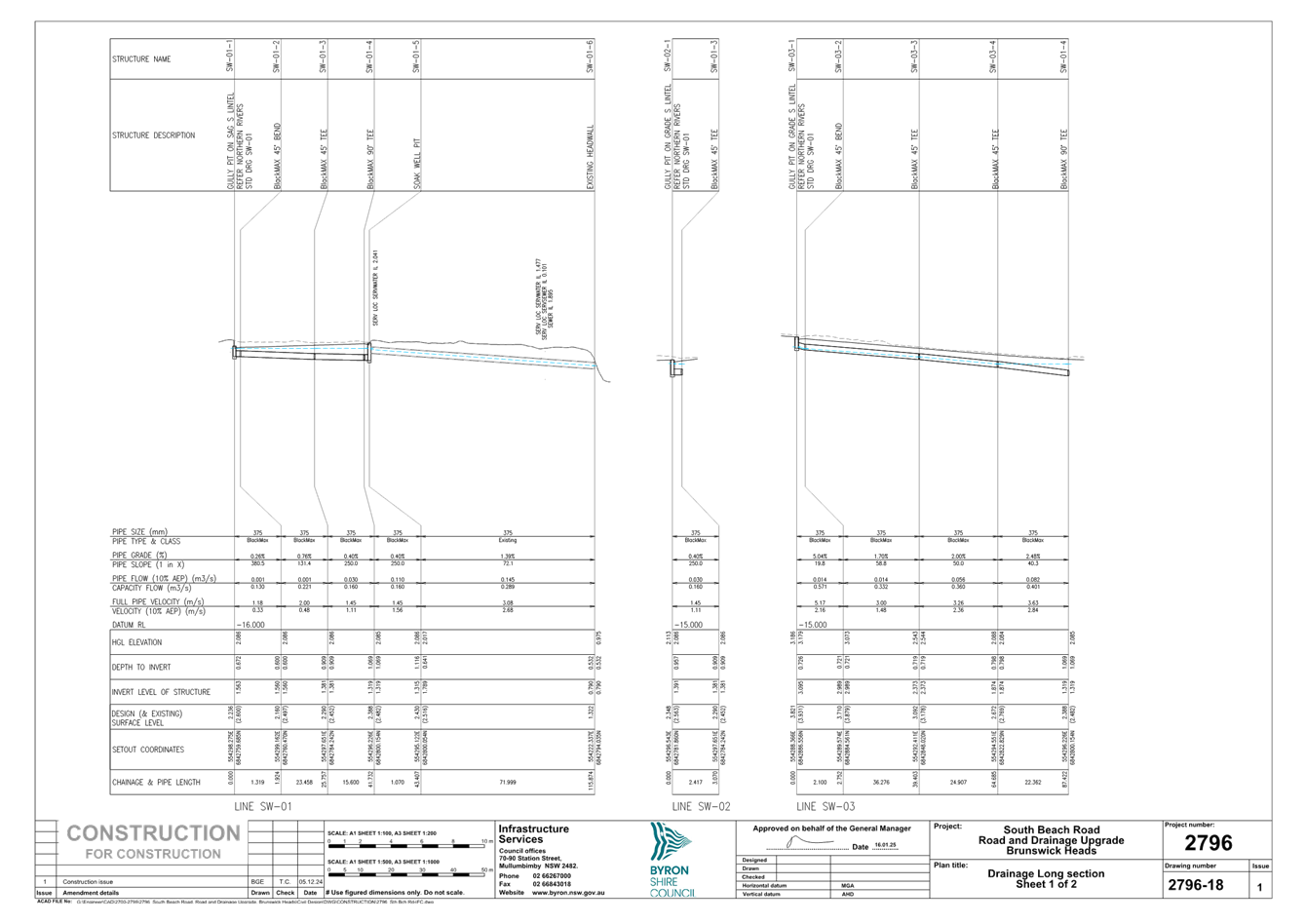 Roadworks in accordance with approved drawings, Council's current “Northern Rivers Local Government Development Design & Construction Manuals and Standard Drawings” and Austroads Guide to Road Design.