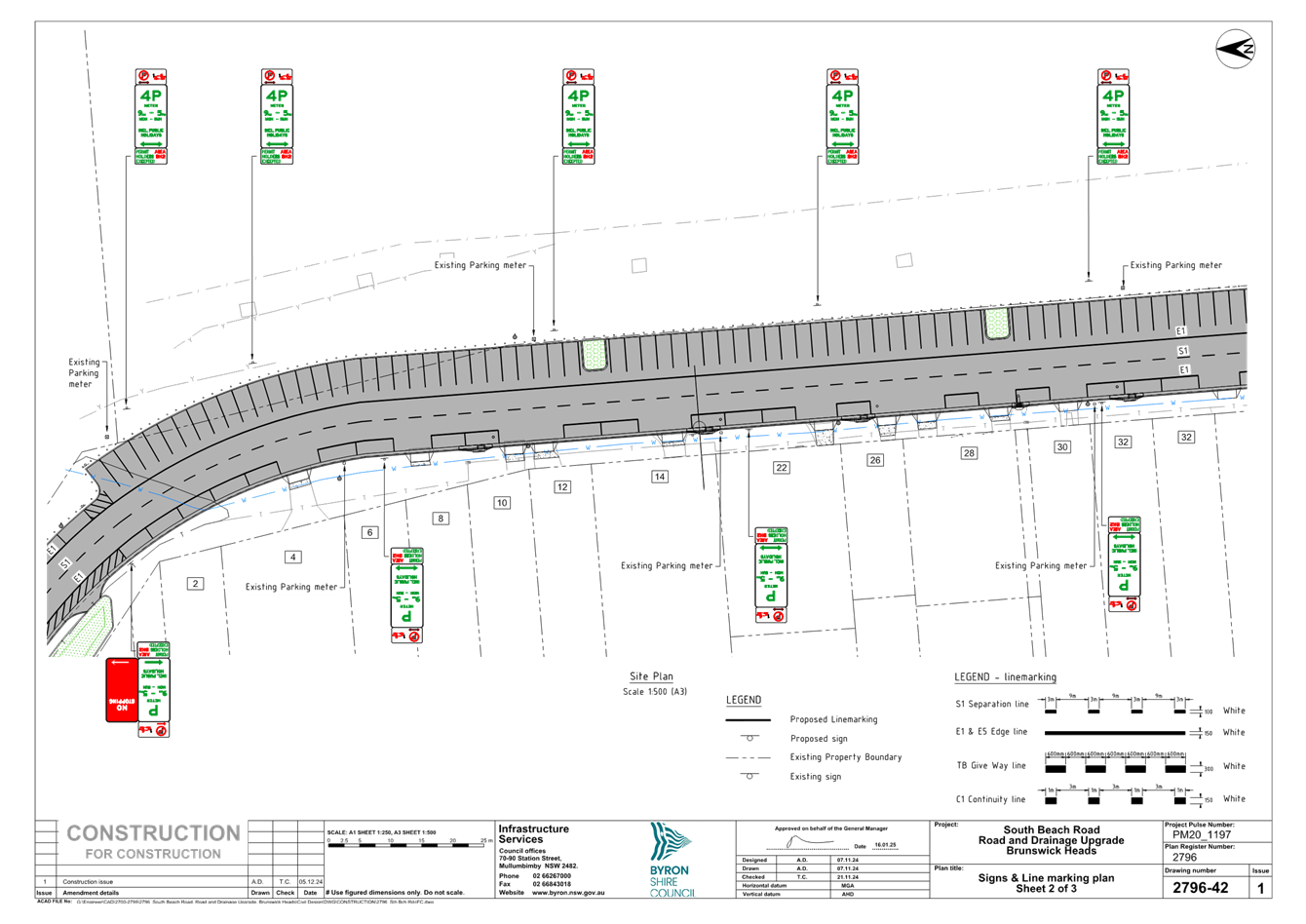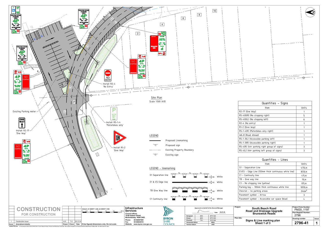 Installation of new parking signage and linemarking in multiple locations around Brunswick Heads as detailed in the Scope of Work within the memo (Attachment 1).