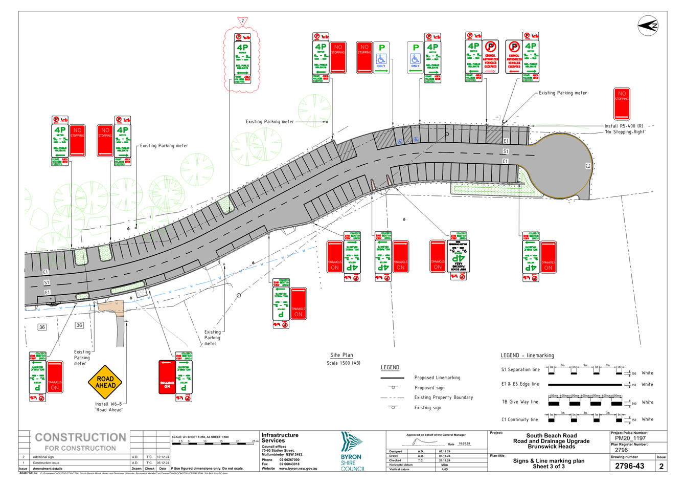 That the Local Traffic Committee supports the signage, line markings and traffic control devices associated with the South Beach Road works in accordance with Attachment 1 (E2024/148246)