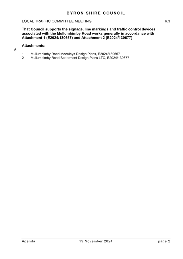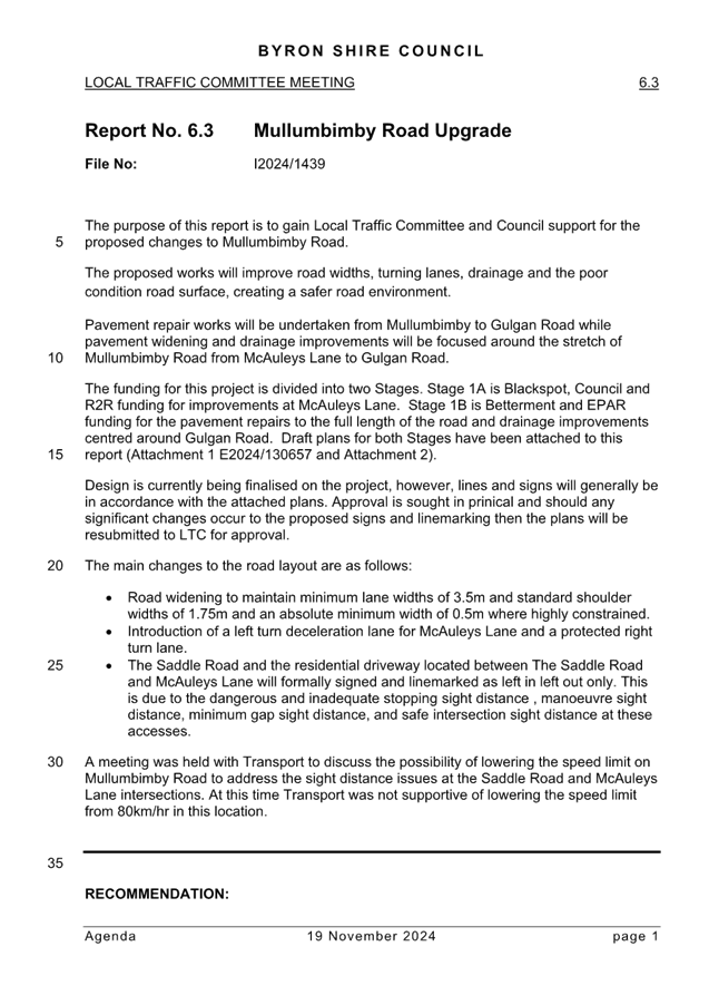 19/11/2024 Local Traffic Committee Mullumbimby Road Upgrade, I2024/1439 ,