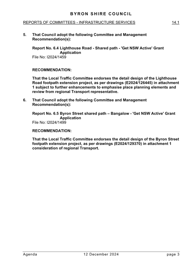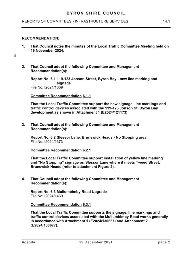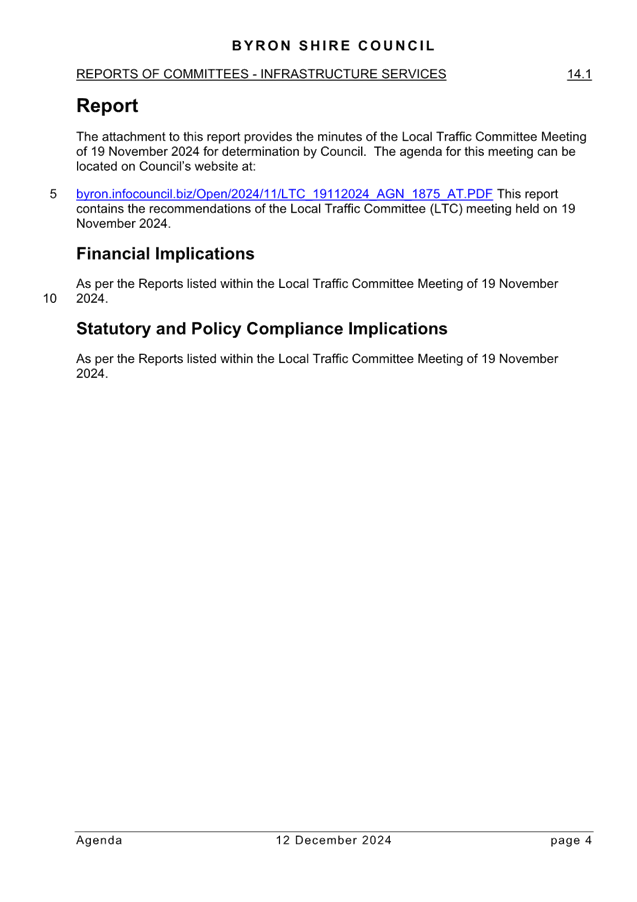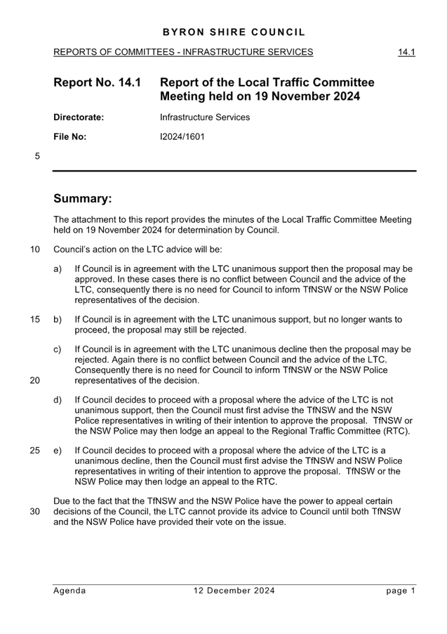 12/12/2024 Council Report of the Local Traffic Committee Meeting held on 19