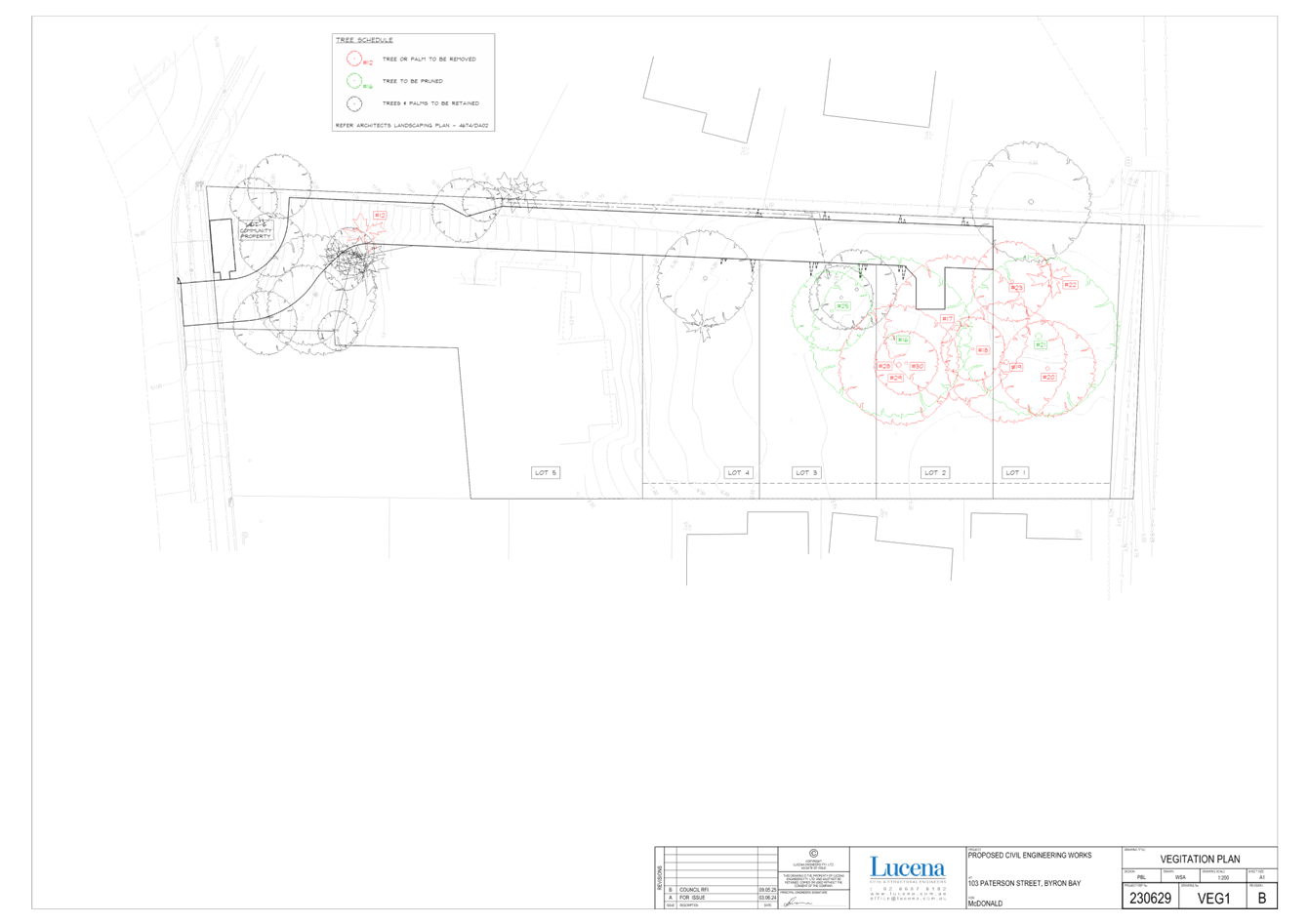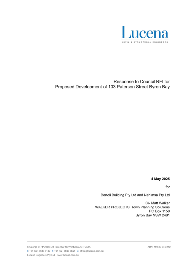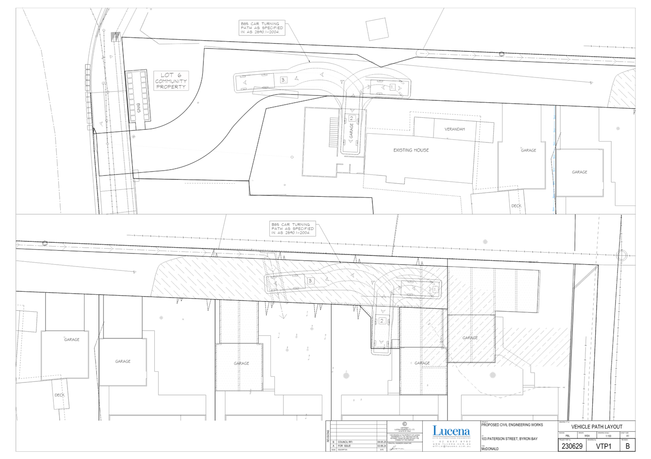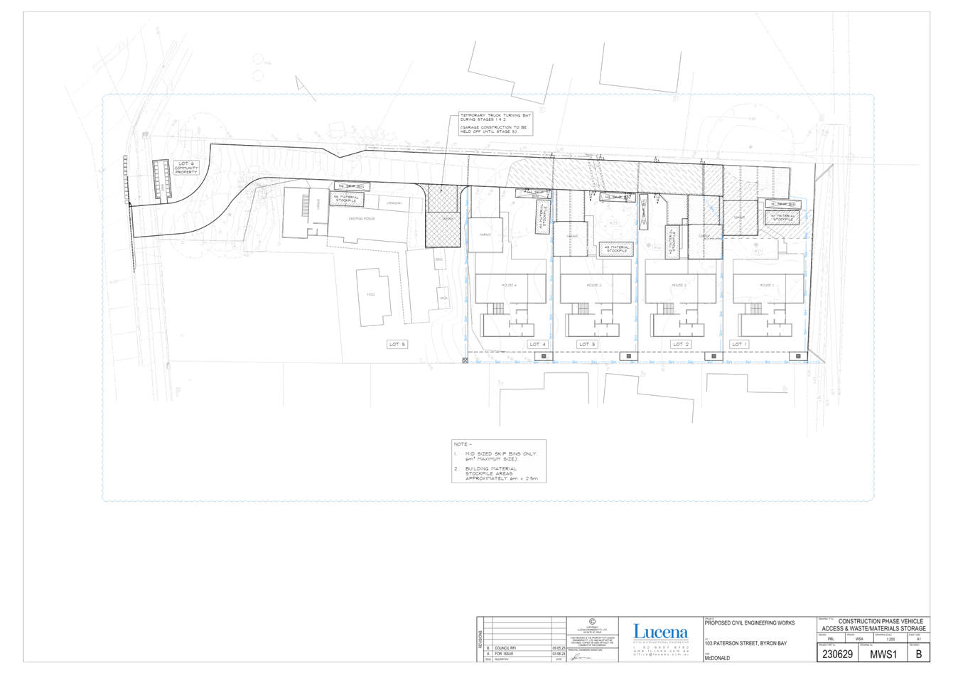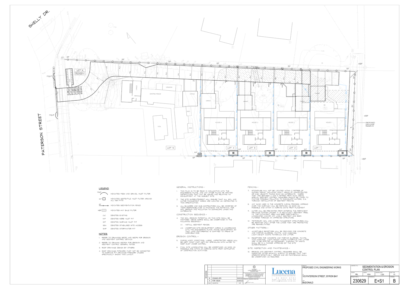 Council’s development engineer is currently assessing a development application – 10.2024.376.1, for the creation of a 5-lot Community Title Subdivision, construction of four detached dwellings on vacant lots and the construction of a dual occupancy to the existing dwelling in 103 Paterson St, Byron Bay.