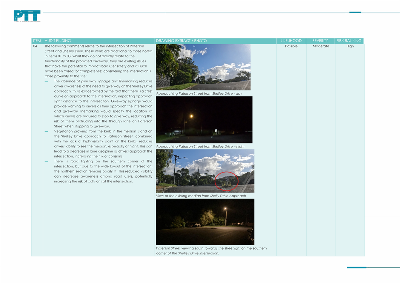 The report seeks technical advice for the proposed upgrade works on Shelly Drive by Lucena Engineers, as well as proposed mitigation measures by Lucena Engineers to address the safety issues identified in the Road Safety Audit (RSA) conducted by Pekol Traffic and Transport Engineering. The proposed upgrade works plan, RSA, and mitigation measures are detailed in Attachment 1.
