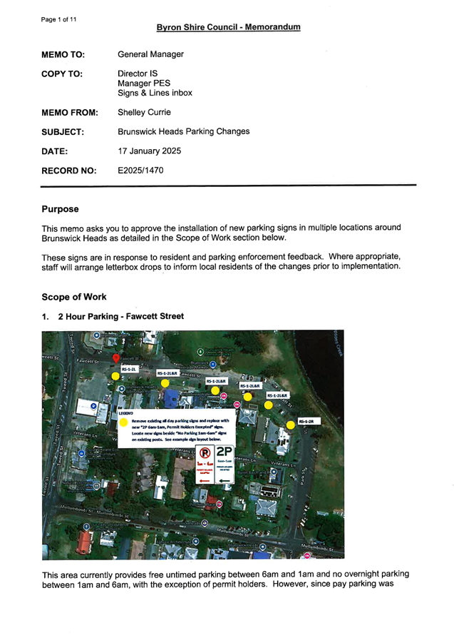 Memo - Brunswick Heads Parking Changes, E2025/1470