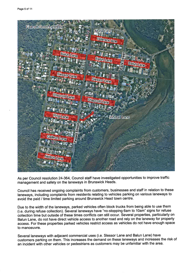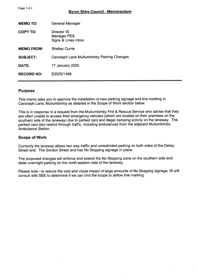 Memo - Cenotaph Lane Mullumbimby Parking Changes, E2025/1498 , page 160⇩