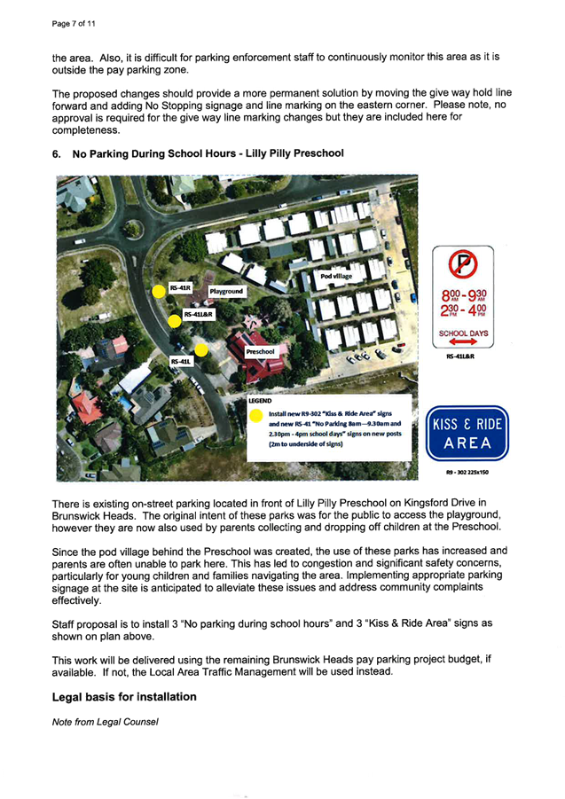 6.4 Parking changes in Fawcett Street, Brunswick Heads.......................................... 60