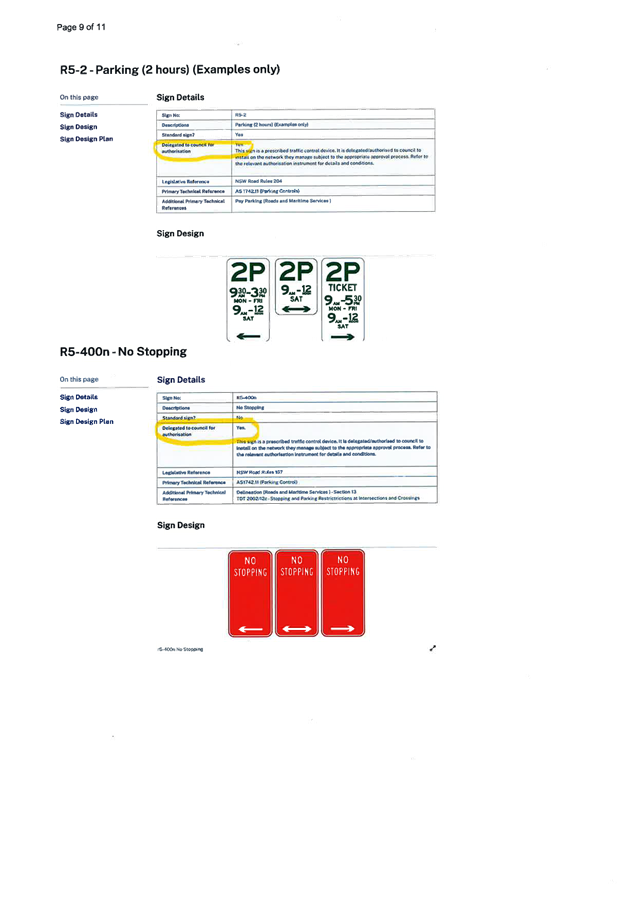 6.2 Tallowood Stage 9 - RFS requirements for No Stopping on non perimeter roads 13