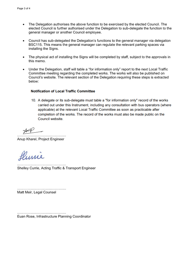 The purpose of this LTC report is to gain support for the proposed regulatory signage and line markings shown in attachment 1.